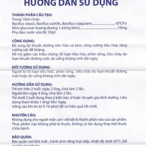 Men sống Bạch Mai bổ sung lợi khuẩn đường tiêu hóa và kẽm, tăng cường tiêu hóa (20 ống x 10ml)