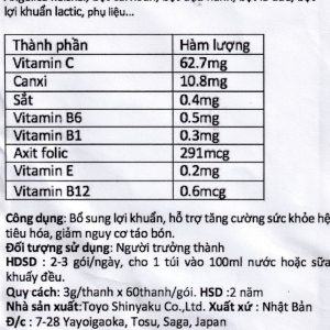 Bột rau xanh Meisen Aojiru Toyo Shinyaku bổ sung lợi khuẩn, tăng cường sức khỏe hệ tiêu hóa (60 gói x 3g)