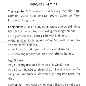 Viên uống Maca #2 Femina Raca bổ sung năng lượng tích cực, tăng bài tiết tố nữ (60 viên)