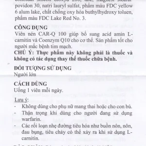 Viên uống Car-Q 100 Dankos bổ sung acid amin L-carnitin và Coenzym Q10 cho cơ thể (3 vỉ x 10 viên)