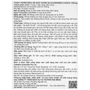 Viên uống Blackmores CoQ10 150mg hỗ trợ chống oxy hóa và duy trì sức khỏe tim (30 viên)
