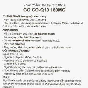 Viên uống Go Co-Q10 160mg hỗ trợ giảm quá trình lão hóa tim mạch (30 viên)