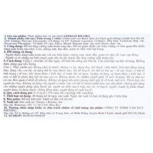 Viên uống Ginkgo Biloba 60mg Nature’s Bounty hỗ trợ tăng cường tuần hoàn não (60 viên)