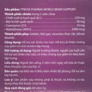 Viên uống Brain Support Pharma World hỗ trợ sức khỏe cho não (60 viên)