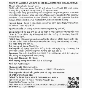 Viên uống Blackmores Brain Active hỗ trợ tỉnh táo và cải thiện trí nhớ (30 viên)
