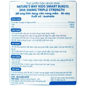 Viên nhai Nature’s Way Kids Smart Bursts DHA 300mg Triple Strength hỗ trợ phát triển não bộ (50 viên)