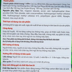 Viên uống Hoạt Huyết Minh Não Khang hỗ trợ hoạt huyết, giảm đau đầu, chóng mặt, mất ngủ (3 vỉ x 10 viên)
