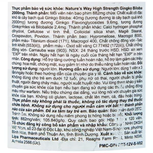 Viên uống High Strength Ginkgo Biloba 2000mg hỗ trợ tăng cường tuần hoàn não (120 viên)