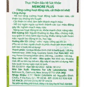 Viên uống Ultra Memore Plus Vitamins For Life hỗ trợ tăng cường hoạt động tuần hoàn não (60 viên)