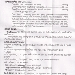 Viên uống TraSleepy Traphaco dưỡng tâm an thần, hỗ trợ gây ngủ, giúp ngủ ngon (2 vỉ x 10 viên)