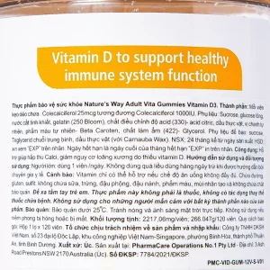 Viên nhai Vita Gummies Vitamin D3 1000IU Nature’s Way hỗ trợ giúp hấp thu canxi (120 viên)