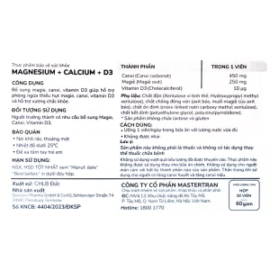 Viên uống Magnesium+Calcium+D3 Doppelherz Aktiv hỗ trợ cơ và xương khỏe mạnh (3 vỉ x 10 viên)