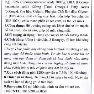 Viên uống Omega-3 Alaska Fish Oil UBB giúp hạ mỡ trong máu, bổ não (100 viên)