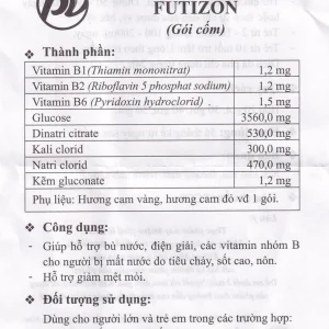Gói cốm Futizon PV Pharma hỗ trợ bù nước, điện giải (40 gói x 4,9g)
