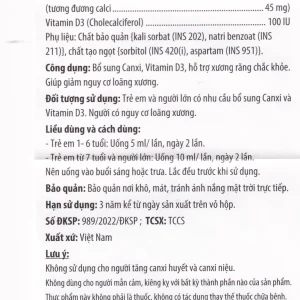 Hỗn dịch Canxi Vitamin D3 KingPhar bổ sung canxi, vitamin D3, hỗ trợ xương răng chắc khỏe (30 ống x 5ml)