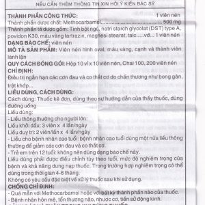 Viên nén Myomethol 500mg R.X điều trị đau lưng cấp tính do co thắt cơ (10 vỉ x 10 viên)