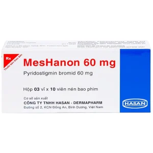 Viên nén MesHanon 60mg Hasan điều trị nhược cơ, tắt ruột do liệt ruột và bí tiểu sau phẫu thuật (3 vỉ x 10 viên)