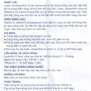 Thuốc Luxathin-E hỗ trợ điều trị bệnh lý về mắt, khô mắt, nhìn mờ, cải thiện thị lực (3 vỉ x 10 viên)