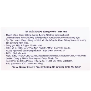 Thuốc Idéos 500mg/400IU Innotech bổ sung Vitamin D và Canxi, điều trị bệnh loãng xương (4 tuýp x 15 viên)