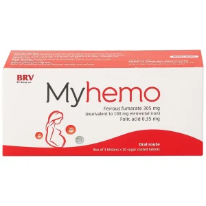 Thuốc Myhemo BRV điều trị dự phòng thiếu sắt và folic acid trong khi mang thai (3 vỉ x 10 viên)