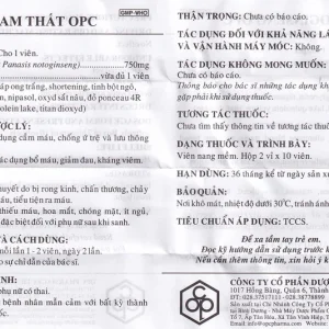 Thuốc Tam Thất OPC điều trị các chứng xuất huyết (2 vỉ x 10 viên)