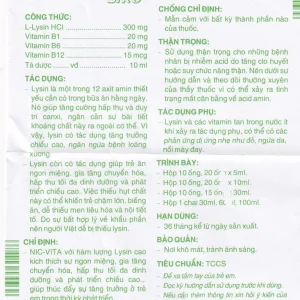 Siro Nic-Vita bổ sung dinh dưỡng, phát triển chiều cao ở trẻ em (20 ống x 10ml)
