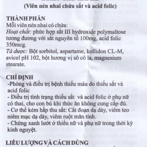 Viên nhai Hemifere 100mg phòng và điều trị bệnh thiếu máu do thiếu sắt và acid folic (3 vỉ x 10 viên)