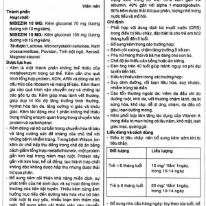 Viên nén Mibezin 15mg Hasan điều trị tiêu chảy, bổ sung kẽm (3 vỉ x 10 viên)