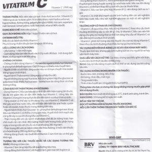 Viên sủi Vitatrum C BRV điều trị các bệnh do thiếu vitamin C (10 viên)