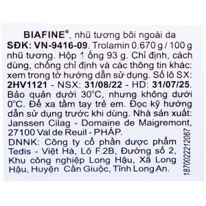Nhũ tương Biafine Janssen điều trị bỏng độ 1, độ 2, các vết thương ngoài da không nhiễm trùng (93g)