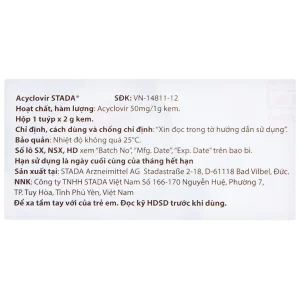 Kem bôi da Acyclovir Stada Cream điều trị nhiễm virus Herpes simplex (2g)