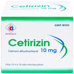 Thuốc Cetirizin 10mg Domesco điều trị viêm mũi dị ứng, mày đay (10 vỉ x 10 viên)