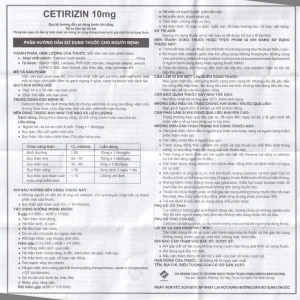 Thuốc Cetirizin 10mg Vidipha điều trị triệu chứng viêm mũi dị ứng, mày đay (10 vỉ x 10 viên)