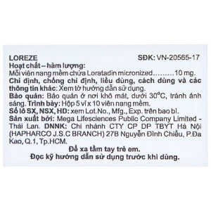 Viên nang mềm Loreze 10mg MEGA We care điều trị viêm mũi dị ứng, mày đay (5 vỉ x 10 viên)