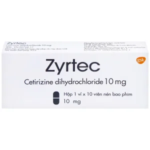Thuốc Zyrtec GSK giảm viêm mũi dị ứng, mày đay tự phát, mạn tính (1 vỉ x 10 viên)
