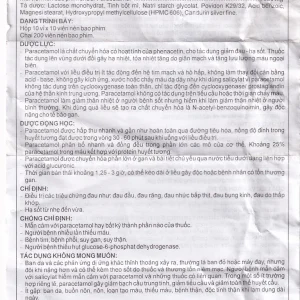 Viên nén Panactol 500mg Khapharco giảm đau, hạ sốt, điều trị đau đầu, đau răng (10 vỉ x 10 viên)