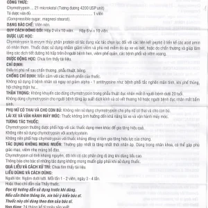 Thuốc Alphachymotrypsin 4200 Mebiphar điều trị viêm và phù nề chấn thương, sau phẩu thuật (20 vỉ x 10 viên)