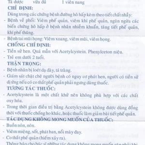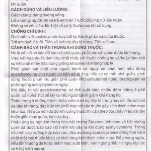 Thuốc Acetylcystein 200mg Vidipha tiêu nhầy trong bệnh viêm phế quản, bệnh nhầy nhớt (20 vỉ x 10 viên)