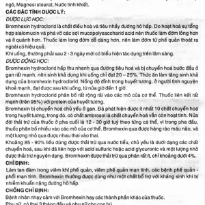 Thuốc Bromhexin 4 DHG điều trị rối loạn tiết dịch phế quản trong viêm phế quản cấp tính (2 vỉ x 20 viên)