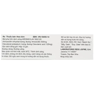Bột pha hỗn dịch uống Ardineclav 500/125 Laboratorio Reig Jofre điều trị ngắn ngày nhiễm khuẩn (12 gói)