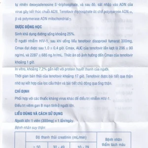 Thuốc Ténofovir Disoproxil Comprimés điều trị HIV-1 và viêm gan B (30 viên)