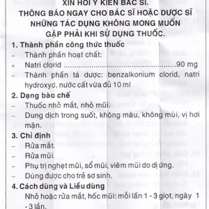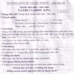 Thuốc nhỏ mắt, nhỏ mũi Natri Clorid 0,9% Nam Hà rửa mắt, mũi, phụ trị nghẹt mũi, sổ mũi (10ml)