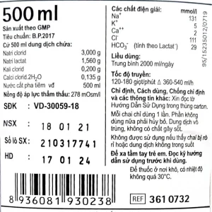 Dung dịch Ringer Lactate Intravenous Infusion truyền tĩnh mạch bù nước và điện giải (500ml)