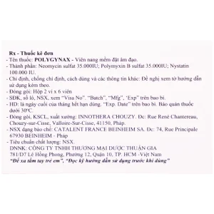 Viên đặt âm đạo Polygynax Innothera Chouzy điều trị viêm âm đạo, âm hộ – âm đạo (2 vỉ x 6 viên)