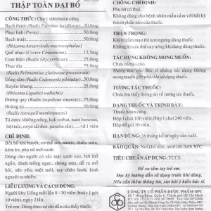 Thuốc Thập Toàn Đại Bổ OPC bồi bổ khí huyết, trị suy nhược cơ thể (240 viên)