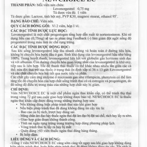 Thuốc Newchoice EC 0,75mg Nam Hà ngừa thai khẩn cấp (1 vỉ x 2 viên)