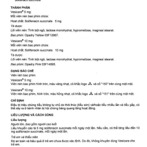 Thuốc Vesicare 5mg Astellas điều trị triệu chứng tiểu không tự chủ (3 vỉ x 10 viên)