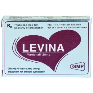 Thuốc Levina 20mg Cophavina điều trị rối loạn chức năng cương dương (1 vỉ x 4 viên)