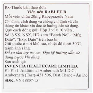 Thuốc Rablet-B Inventia điều trị loét do hội chứng trào ngược dạ dày, thực quản (3 vỉ x 10 viên)