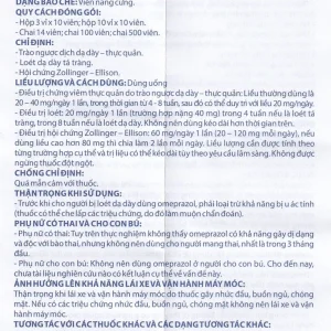 Viên nang cứng Omeprazol TVP 20mg điều trị loét tá tràng, viêm loét dạ dày (3 vỉ x 10 viên)